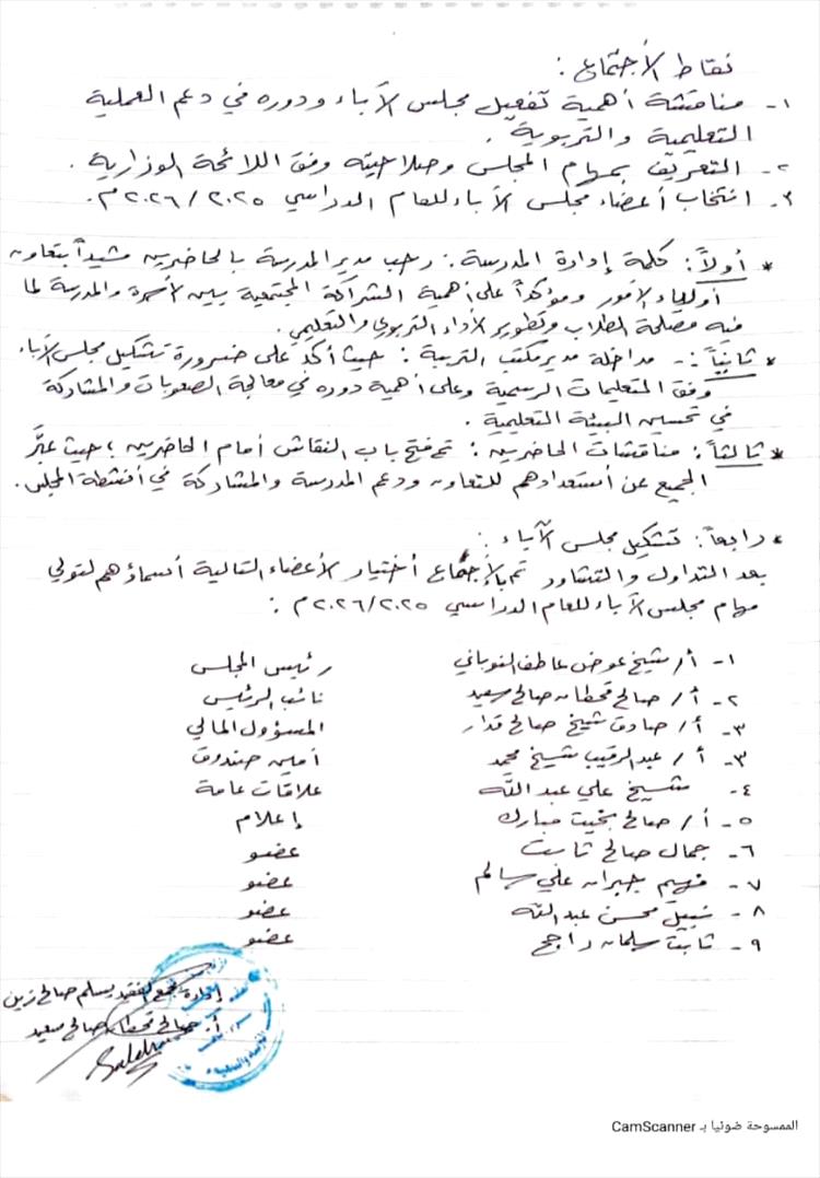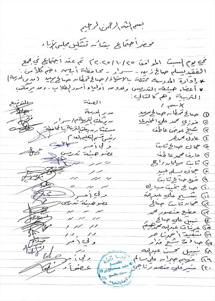 وفي ختام اللقاء وبعد التشاور تم اختيار التالية أسماؤهم لتولي مهام مجلس الآباء الجديد لثانوية سرار  وهم:
