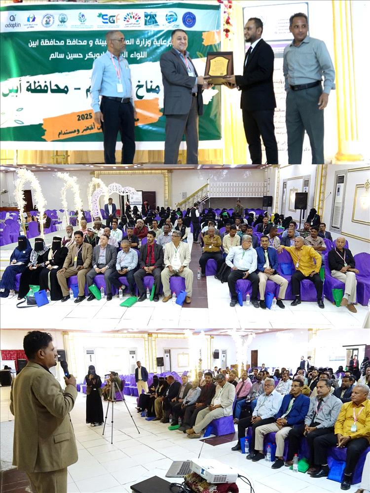 وفي الختام، كرمت مؤسسة شباب أبين السلطة المحلية بالمحافظة ممثلة بمحافظ المحافظة اللواء أبو بكر حسين سالم، ونائب المحافظ الأمين العام للمجلس المحلي أ. مهدي الحامد، وممثلي وزارة الشؤون الاجتماعية والعمل، وعدد من مدراء عموم المكاتب بالمحافظة، وممثلي المنظمات الدولية والمحلية ومنظمات المجتمع المدني، وعدد من الخبراء المختصين في مجال البيئة والمناخ.