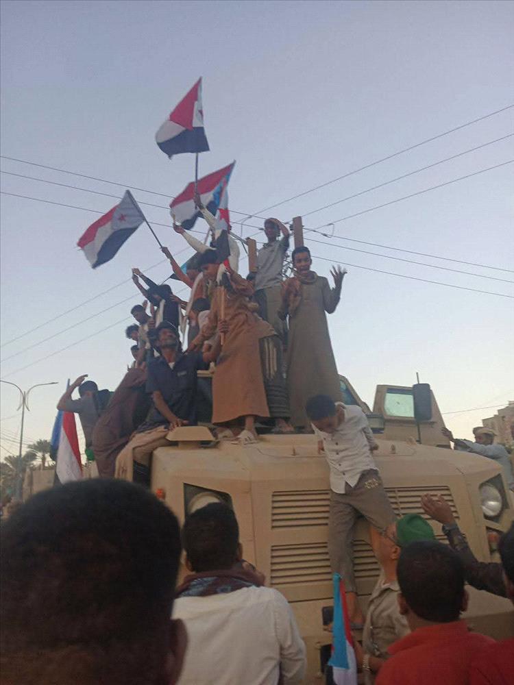 احتفل أهالي حضرموت بتواجد القوات الجنوبية، واعتلت المدرعات العسكرية بالأعلام الجنوبية في مشهد يعكس ثقتهم وانتماءهم الوطني.