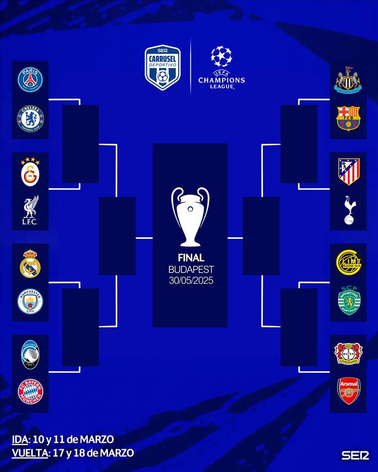 أسفرت قرعة دور الـ16 من بطولة دوري أبطال أوروبا لموسم 2025-2026، التي أُجريت اليوم الجمعة في مقر الاتحاد الأوروبي لكرة القدم بمدينة نيون السويسرية، عن مواجهات قوية ومثيرة بين كبار الأندية الأوروبية.